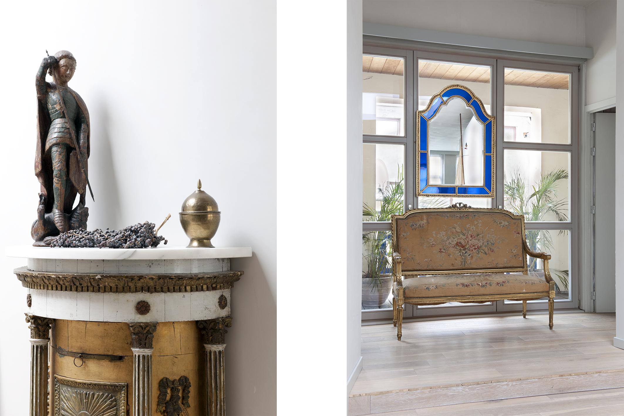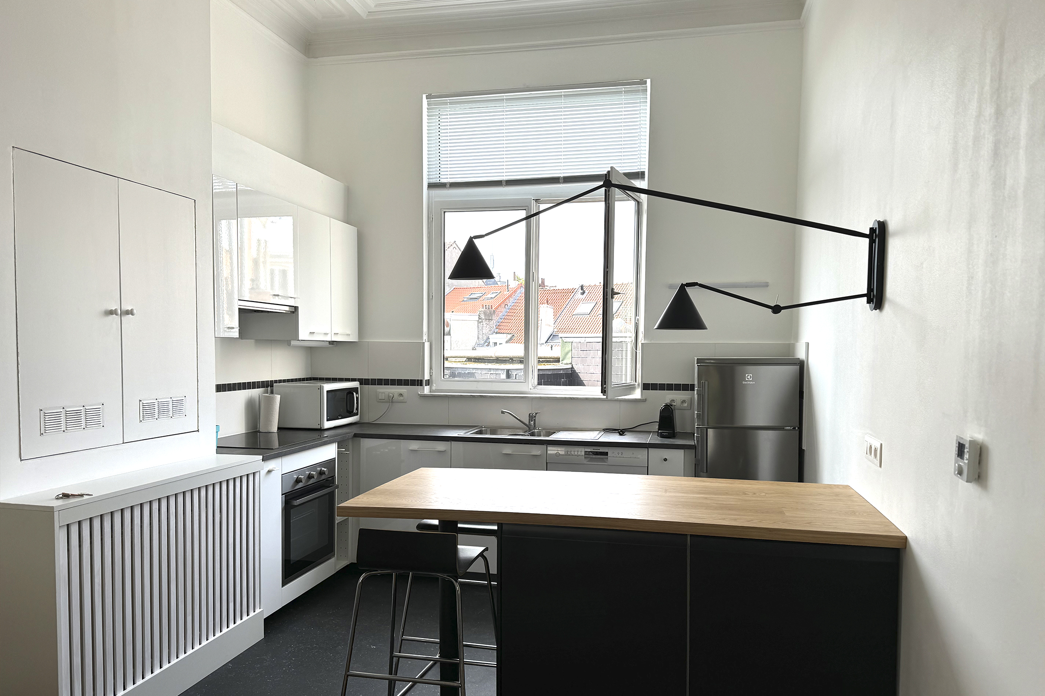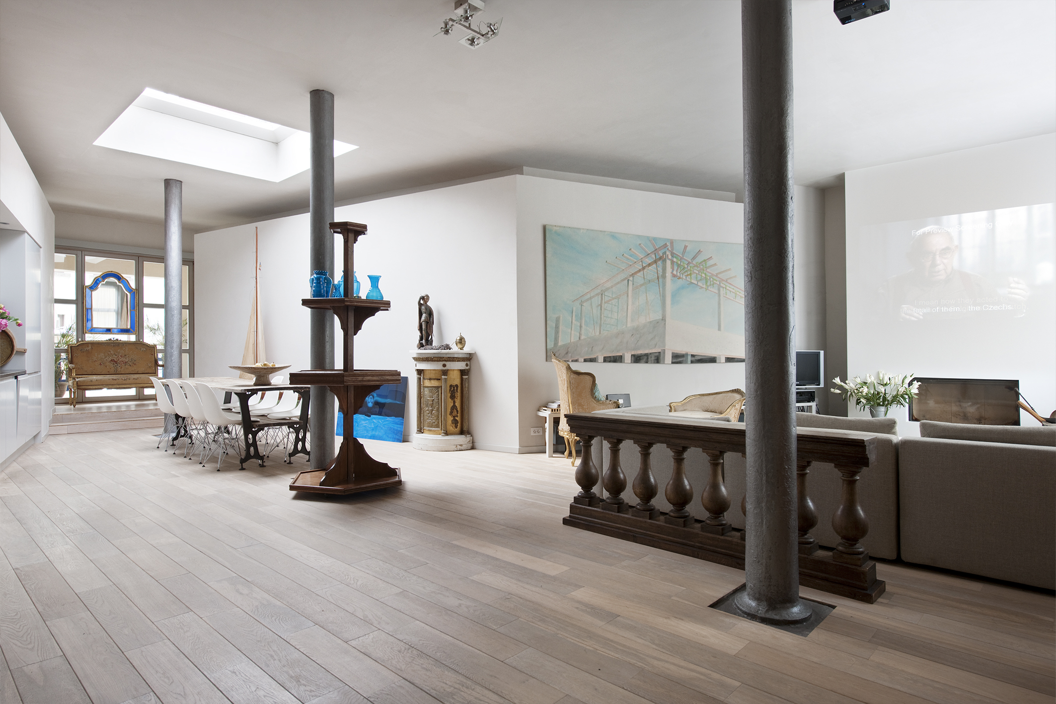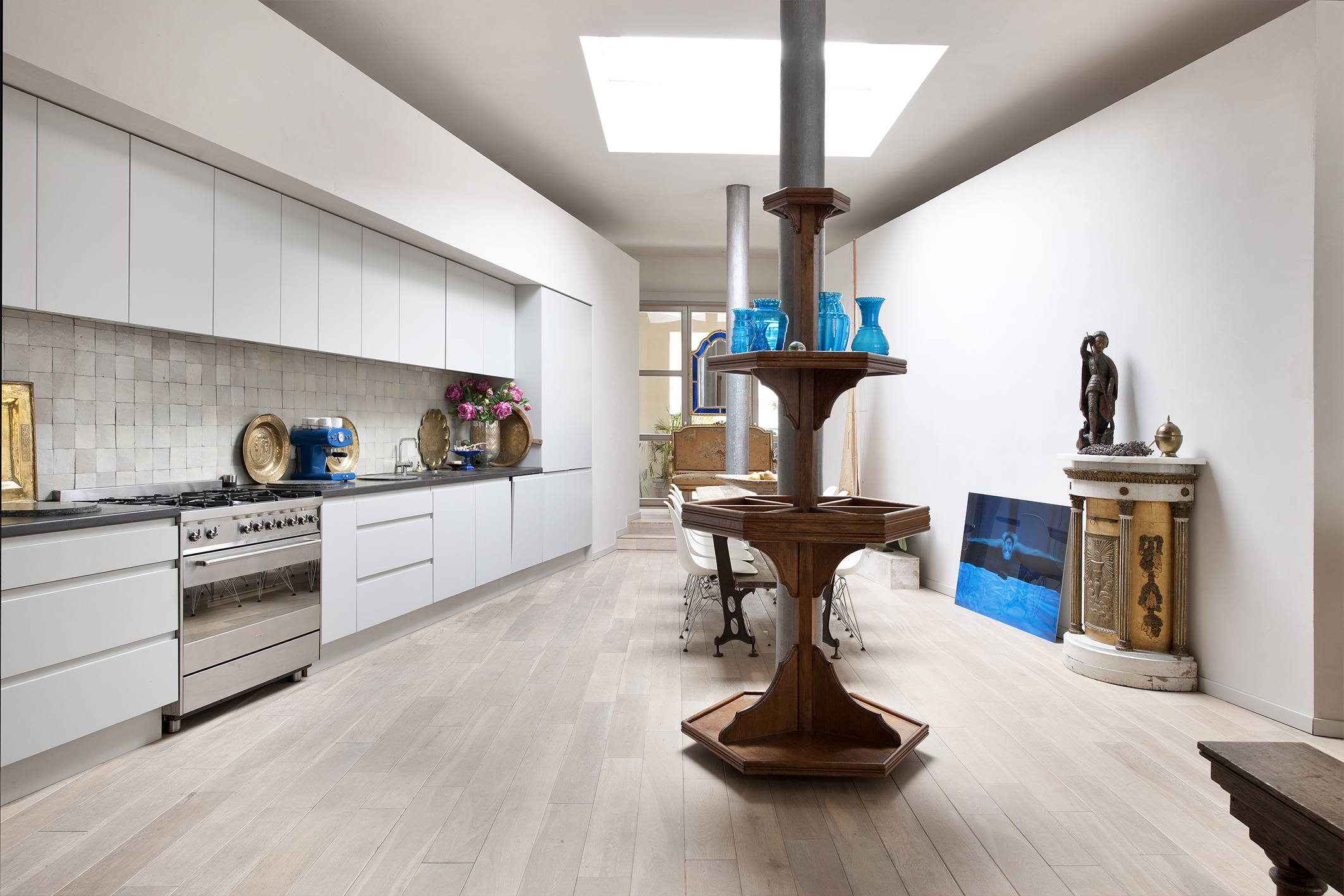 A sublime eclectic loft in the heart of Brussels emerges on a bright top floor. Here I celebrate my passion for blending seemingly contradictory worlds together: an audacious petrol blue library, Moroccan carpets, a touch of Flemish medieval, solid Scandinavian design furniture, balanced with contemporary artworks.