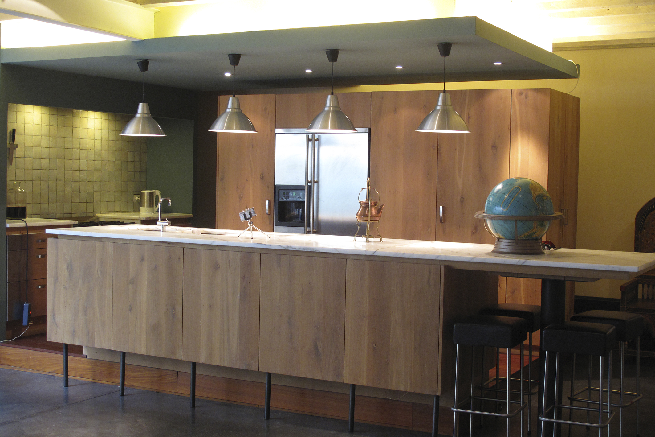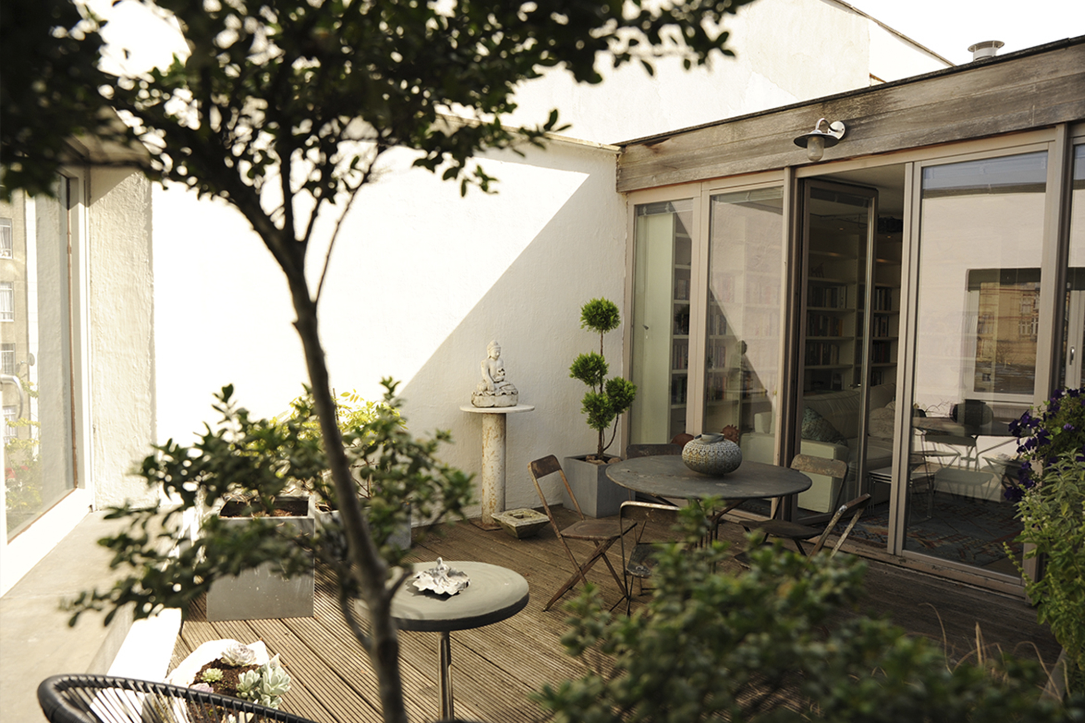 and a large outdoor area on the top floor of an old warehouse. It now has a spacious bedroom with adjoining small patio, and an elegant bathroom. The terrace was the challenge. We used most of it for a generous living, kitchen and storage spaces, while leaving a delightfully spacious garden to enjoy the sun.