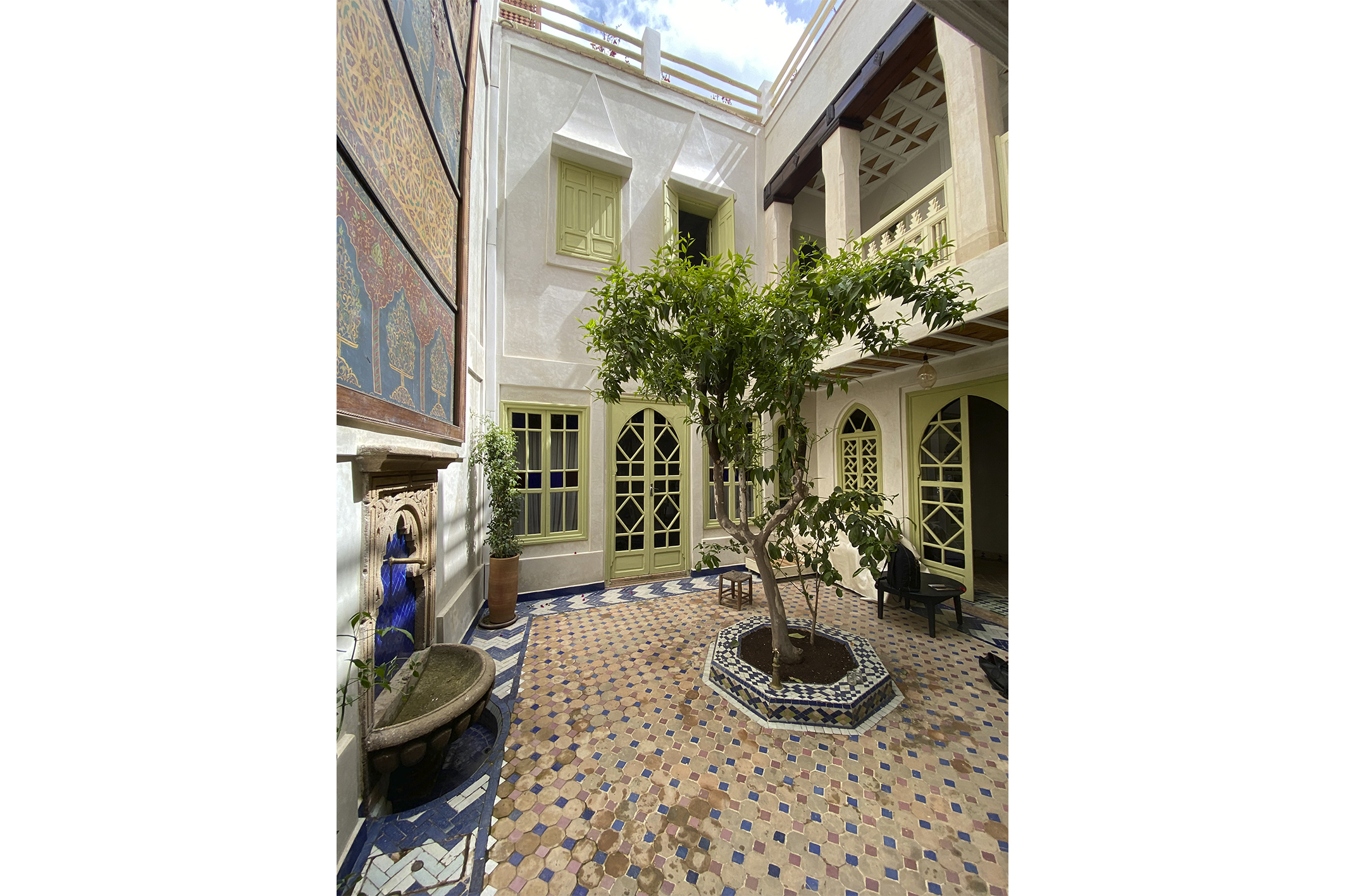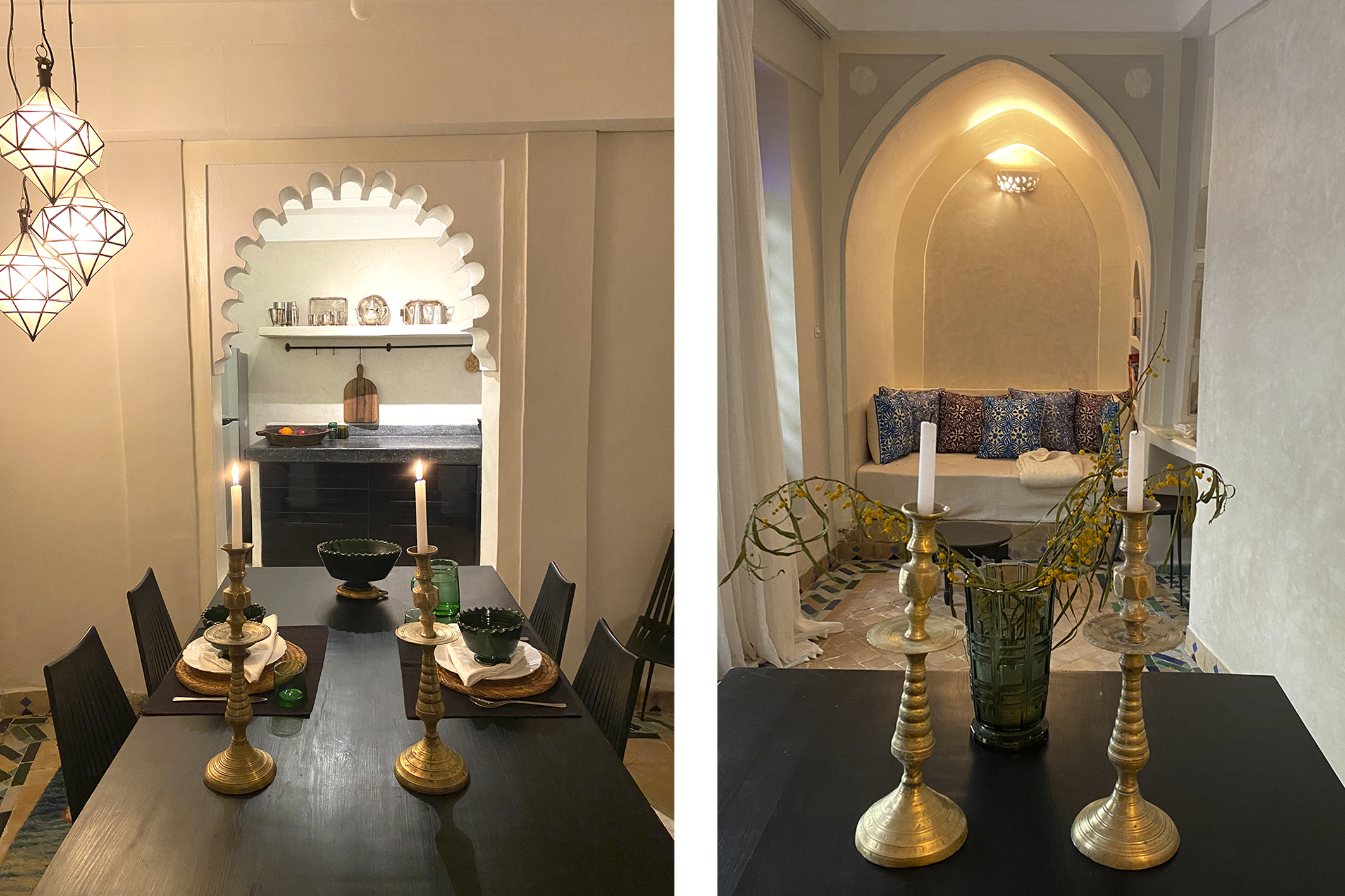 In the Jewish Quarter of Marrakesh, I rejuvenated a dilapidated riad into an elegant boutique residence over three floors and a rooftop terrace. I combined a refined colour palette with Eastern and European furniture to create a contemporary style. Keeping many original Moroccan features, I also opted for modern comfort, installing a stunning black kitchen.